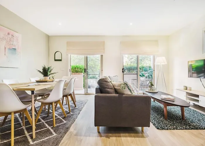 The spacious 2-bedroom Harp Haven - Contemporary In Suburban Tree Lined Kew Apartment Melbourne is located approximately 9 km from Flinders Street train station and only 6 minutes' walk from the Victoria Park.